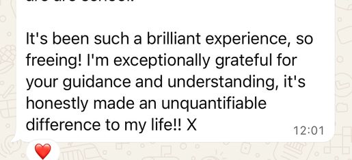 I work VERY differently with each client that joins my 1:1 therapy programme. I work holistically when tackling the problem, helping each client unpack what truly lies beneath, so that true & deep healing is possible.